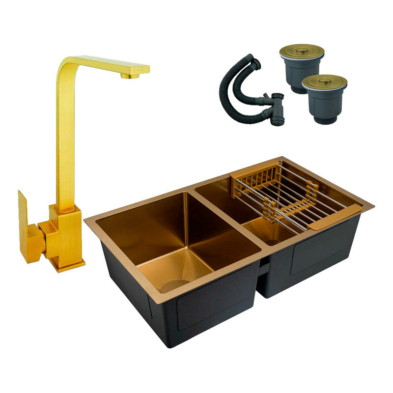 Combo Lavaplatos Doble 77*45cm+griferia Lvp Oro L Cepillado