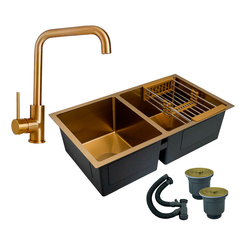 Combo Lavaplatos Doble 77*45cm+griferia Lvp 7 Oro Cepillado