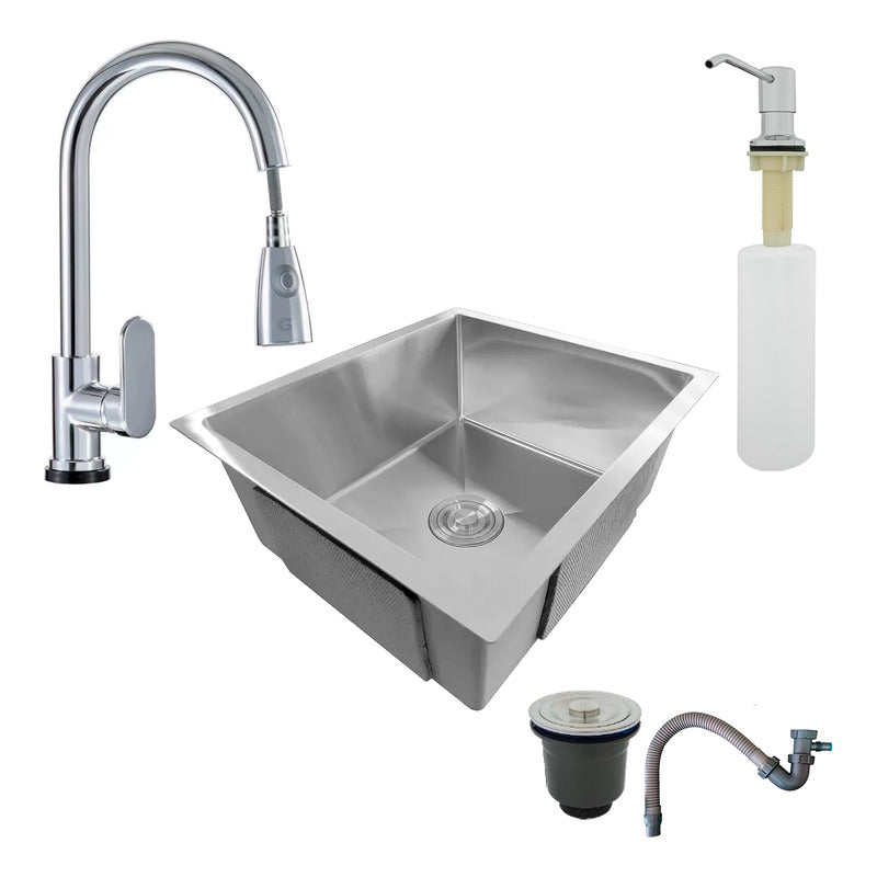 Combo Lavaplatos 60*45cm+grif.extraible+dispensador Y Acc