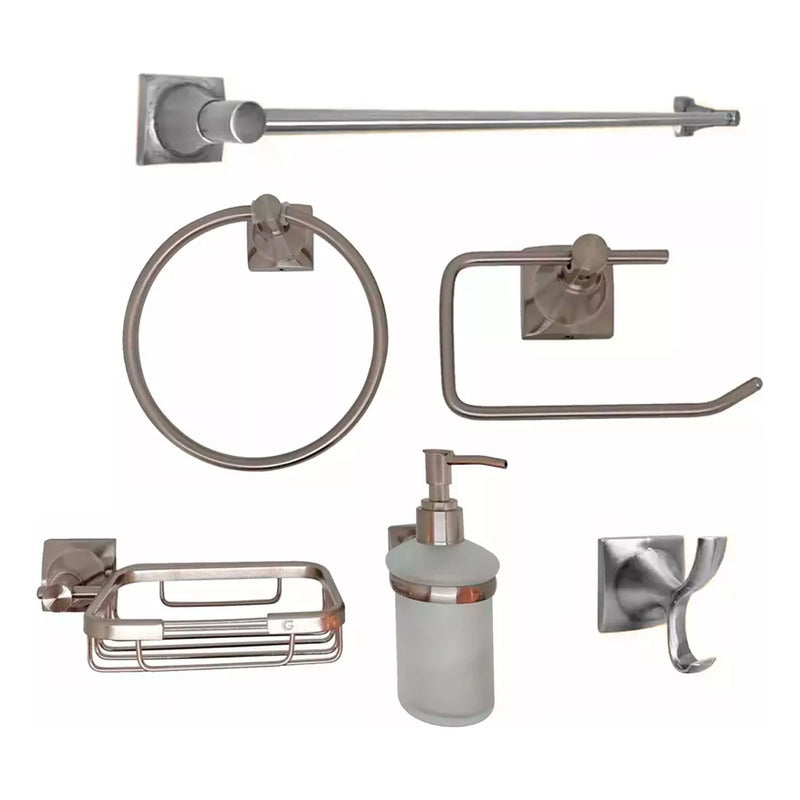 JUEGO DE ACCESORIOS PARA BAÑO XCARET SATINADO X 6 SKU: 1700S Juego de accesorios para baño con un diseño elegante y moderno, se adapta a cualquier estilo de decoración en baños. Es práctico, con alta resistencia e inoxidable. PREGUNTAS FRECUENTES ¿GENERAN FACTURA? Sí, emitimos facturas legales con IVA incluido. Somos un régimen común y realizamos facturación electrónica. ¿MANEJAN VARIEDAD DE TONOS? Sí, manejamos una amplia gama de colores, como bronce y cobre antiguo, para personalizar tus griferías y accesorios. Realizamos acabados de aspecto antiguo en griferías nuevas o usadas. Transformamos tus griferías para darles un toque clásico y elegante. ¿SON FABRICANTES? Sí, somos fabricantes de tus ideas. Fabricamos hermosas griferías y accesorios de excelente calidad para embellecer tus espacios de la mejor manera. En GRIFOS CENTER, convertimos tus ideas en realidad. Fabricamos griferías VINTAGE y ofrecemos diversos estilos de acabados antiguos para tus griferías y accesorios. Además, proporcionamos una amplia variedad de productos de alta calidad para el hogar y productos institucionales para tus proyectos. ¿GENERAN FACTURA LEGAL Y ELECTRÓNICA? Sí, generamos factura legal con IVA incluido y ofrecemos facturación electrónica. ¿MI COMPRA TIENE GARANTÍA? Todos nuestros productos son nuevos y cuentan con garantía oficial de 1 año. Se entregan en sus empaques o cajas originales. ¿TIENEN PUNTO DE VENTA? Sí, somos GRIFOS CENTER y tenemos un punto de venta físico donde puedes recoger tus productos directamente si lo deseas. ¿DÓNDE ESTÁN UBICADOS? Nos encontramos en el Norte de Bogotá. Tenemos un amplio stock de nuestros productos para envío inmediato. Además, ofrecemos la opción de recoger tus compras en nuestro punto de venta. ¿MANEJAN PRODUCTOS PARA PROYECTOS? Sí, ofrecemos una amplia variedad de productos y contamos con un extenso inventario para atender proyectos grandes, como constructoras, hoteles, colegios y grandes superficies. ¿OFRECEN PRODUCTOS AL POR MAYOR? Sí, contamos con un extenso inventario y una gran variedad de productos para atender tus solicitudes. ¿HACEN ENVÍOS A NIVEL NACIONAL? Sí, GRIFOS CENTER realiza envíos a nivel nacional. ¿SE PUEDEN RETIRAR LOS PRODUCTOS EN EL PUNTO DE VENTA? Ofrecemos la opción de retirar productos en nuestro punto de venta o de enviarlos por otra transportadora, seleccionando "recojo en el domicilio del vendedor". En este caso, el comprador se encarga del costo del envío. NOTA IMPORTANTE: Los logos en la publicación son marcas de agua y el producto te llegará sin este logo. ----------------------SOMOS IMPORTADORES CON MARCA PROPIA-----------------------