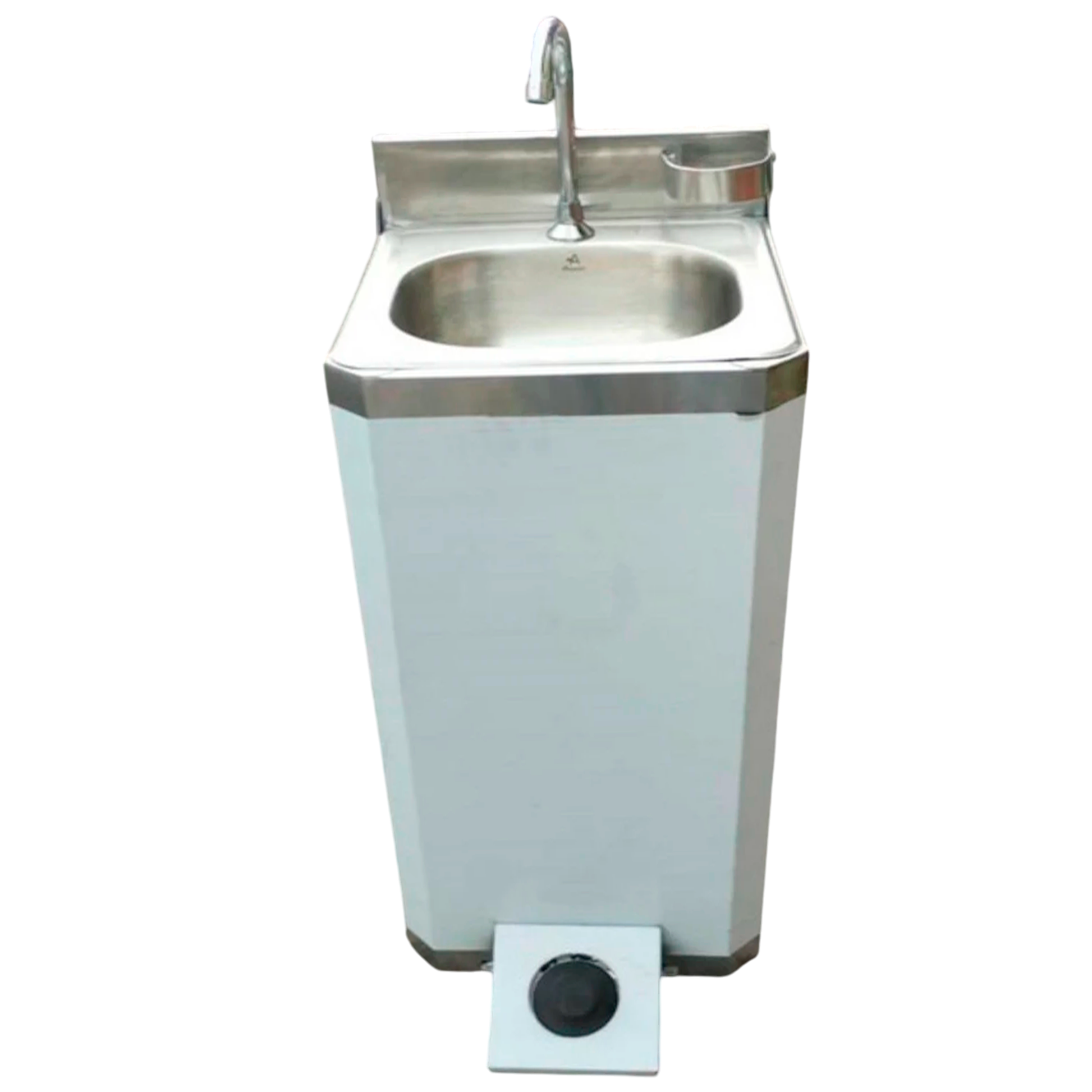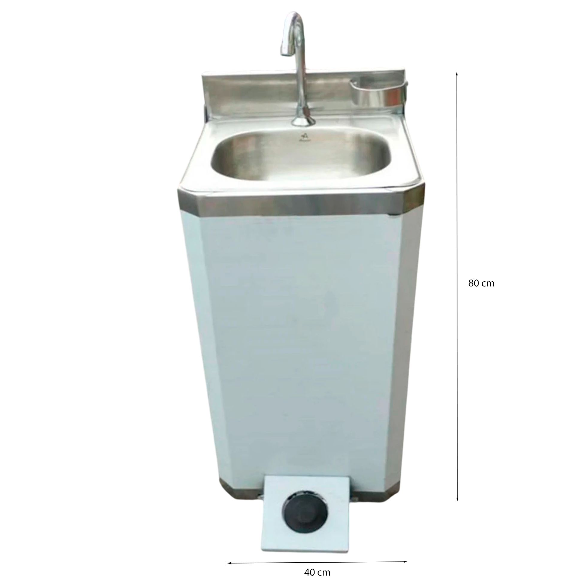 LAVAMANOS PÒRTATIL POCETA EN ACERO 304 QUIRÚRGICO INOXIDABLE, BASE EN ACERO 430, 2 TANQUES INTERNOS DE 10 LITROS C/U, SISTEMA DE PEDAL CON CINTA ANTIDESLIZANTE PARA EL JABÓN, BOMBA DISEÑADA PARA EL ALTO TRÁFICO DE PERSONAS, DIMENSIONES ALTO: 80 CM FRENTE: 40 CM FONDO: 40 CM