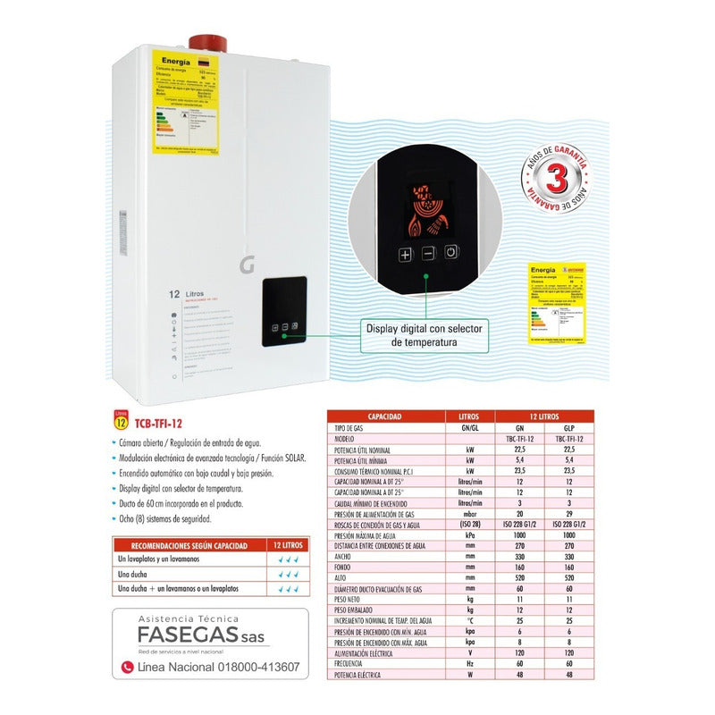 Calentador Paso a Gas 12 Litros Marca: GRIFOS CENTER. Material: De alta calidad. Diseño: Elegante y funcional. ENVIO GRATIS Venta factura régimen común. Somos fabricantes de sus ideas. -------------ENTREGA DEL PRODUCTO ENTRE 1 A 2 DIAS EN CIUDADES PRINCIPALES Y DE NO SER ASI DE 2 A 3 DIAS HABILES ---------------------------------- ¿Generan factura legal? Si. generamos facturas legales con iva incluido. Somos régimen común. ¿Mi compra tiene garantía? Si. todos nuestros productos son nuevos y cuentan con garantía oficial. Se entregan en sus empaques o cajas originales. ¿Tiene punto de venta? SI, SOMOS GRIFOS CENTER y tenemos nuestro punto de venta, puedes recoger tus productos directamente si deseas. ¿Dónde están ubicados? Estamos en Bogotá podemos entregarte el mismo día dependiendo el producto y cantidad. • puedes recoger en nuestro punto de venta.