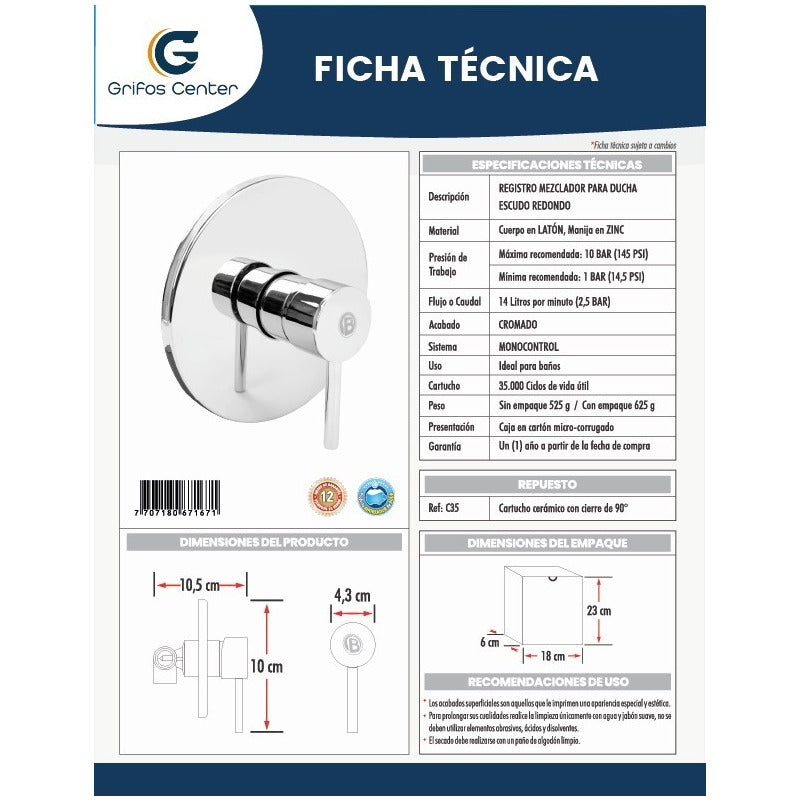 SKU: H-F3002 BOCH Registro Mezclador Monocontrol Marca: GRIFOS CENTER Material de alta calidad Diseño elegante y funcional -Venta factura régimen común. -También contamos con variedad de tonos. -Somos fabricantes de sus ideas. -------------ENTREGA DEL PRODUCTO ENTRE 1 A 2 DIAS EN CIUDADES PRINCIPALES Y DE NO SER ASI DE 2 A 3 DIAS HABILES ---------------------------------- -SOMOS FABRICANTES EN GRIFERIAS, LAVAMANOS Y ACCESORIOS VITAGE- SE REALIZA ACABADO (ANTIGUO) A TODA CLASE DE GRIFERIAS NUEVAS O USADAS. ¿Generan factura legal Electrónica? Si. Generamos facturas legal electrónica con IVA incluido. Somos régimen común. ¿Mi compra tiene garantía? Si. Todos nuestros productos son nuevos y cuentan con garantía oficial. Se entregan en sus empaques o cajas originales. ¿Tiene punto de venta? SI, somos GRIFOS CENTER y tenemos nuestro punto de venta, puedes recoger tus productos directamente si deseas, o enviar por otra transportadora colocando recojo en el domicilio del vendedor, en este último el comprador cancela el envío cuando llegue el producto ¿Dónde están ubicados? No solo somos tienda online, también tenemos tienda física con un amplio Stock de nuestros productos para envío inmediato, GRIFOS CENTER esta ubicado en el Norte de Bogotá podemos entregarte el mismo día dependiendo el producto y cantidad. •Recuerda que somos GRIFOS CENTER para mayor información ¿ Son fabricantes? - Si, GRIFOS CENTER es fabricante directo de griferías, lavamanos y accesorios VINTAGE (fabricando tus ideas y ofreciendo diferentes estilos de acabados para tu grifería). Además, brindamos una amplia variedad de productos para todos tus proyectos de construcción y remodelación tanto institucionales, diseños de lujo y línea para el hogar, garantizándote acabados de la mejor calidad. ¿Ofrecen productos al por mayor? - Si, en GRIFOS CENTER contamos con un amplio inventario y variedad de productos para atender proyectos grandes como lo son las constructoras, hoteles, colegios y grandes superficies. ¿ Hacen envíos a nivel nacional? - Si GRIFOS CENTER realiza envíos a nivel nacional. ¿Qué garantías manejan? -Según la referencia comprada generalmente tiene garantía de 1 año donde nos podrás informar cualquier inconveniente NOTA: Los logos en la publicación son marcas de agua el producto te llegara sin este logo -----------------SOMOS IMPORTADORES Y FABRICANTES CON MARCA PROPIA------------