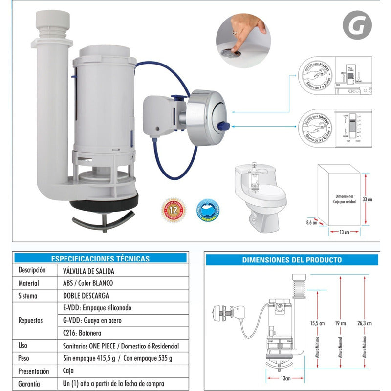 Valvula One Piece Doble Descarga