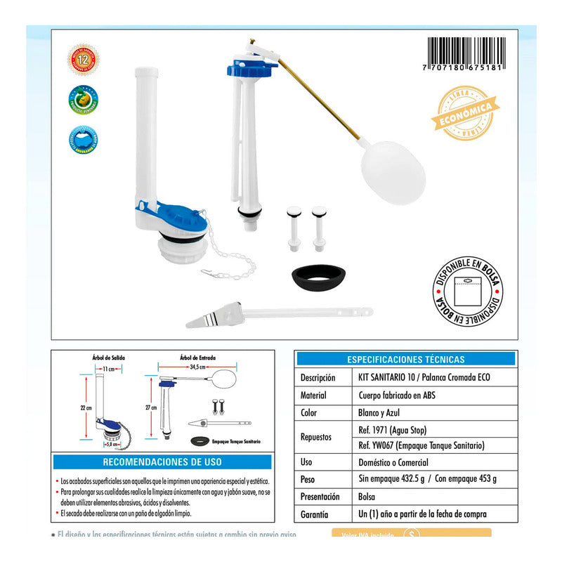 Kit Sanitario 10 Palanca Cromada Eco