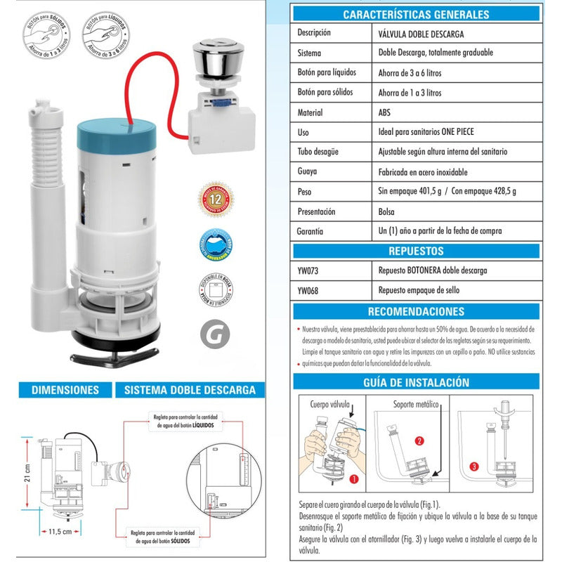 Valvula De Doble Descarga Sanitario One Piece Eco