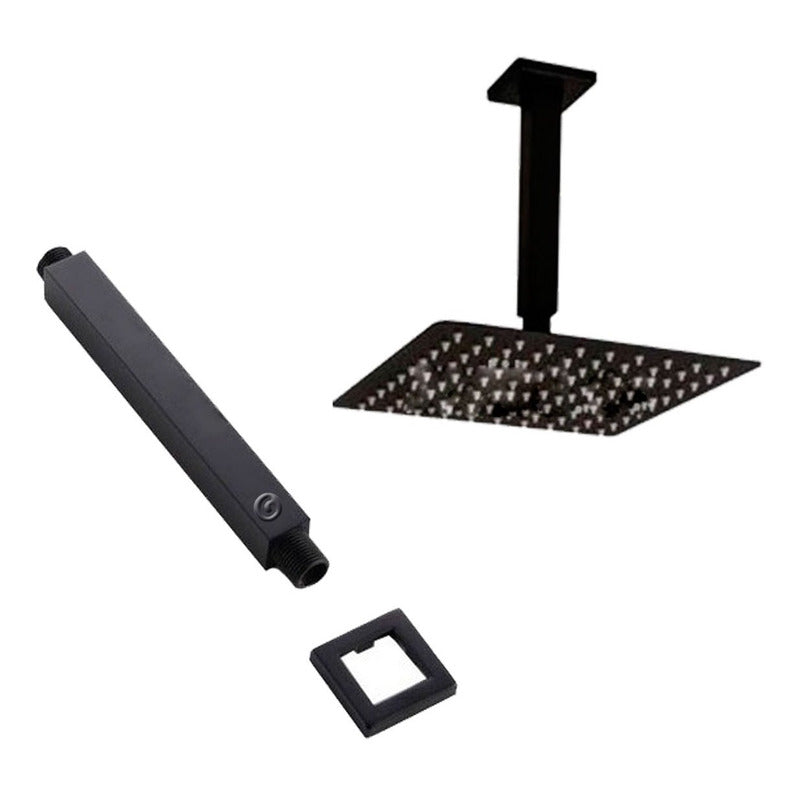 Ducha Con Tubo A Techo Color Negro 20x20 Cm
