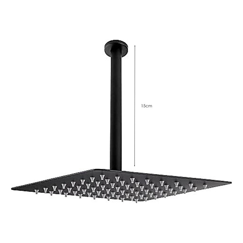 Ducha Negra Cuadrada Con Tubo A Techo En Acero Inoxidable