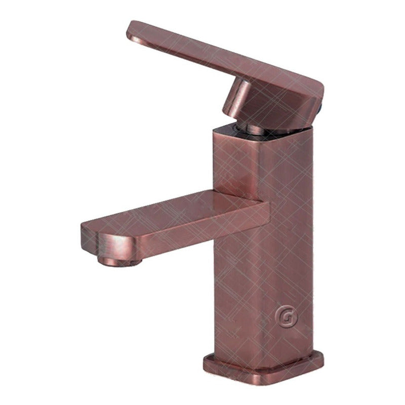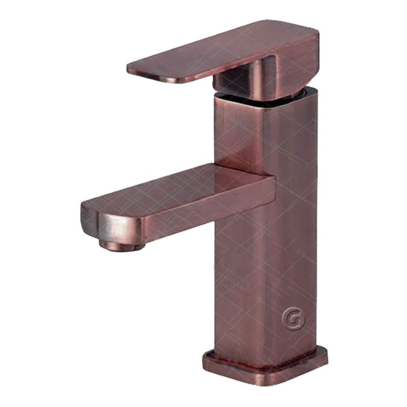 Griferia Monocontrol Baja Cuadrada Lavamanos Cobre Antiguo
