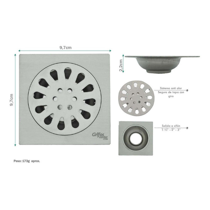 Rejilla cuadrada Tipo Sol en Acero Medidas: -9,6 x 9,6 x 2,2cm -Sistema anti olor -Seguro de tapa con giro Peso: 144,5g aprox. -Hecho de materiales de acero inoxidable, mayor duración de la vida útil. Con funciones de descarga de agua y a prueba de insectos, fácil de limpiar y de usar. -Protege la cocina, el baño, el garaje y el baño de olores desagradables, insectos o ratones. - Marca: GRIFOS CENTER ENVÍO GRATIS -Venta factura régimen común. -También contamos con variedad de tonos entre ellos cromo, dorado, negro. -Somos fabricantes de sus ideas. -------------ENTREGA DEL PRODUCTO ENTRE 1 A 2 DIAS EN CIUDADES PRINCIPALES Y DE NO SER ASI DE 2 A 3 DIAS HABILES ---------------------------------- -SOMOS FABRICANTES EN GRIFERIA VITAGE- SE REALIZA ACABADO (ANTIGUO) A TODA CLASE DE GRIFERIAS NUEVAS O USADAS. ¿Generan factura legal? Si. Generamos facturas legales con IVA incluido. Somos régimen común. ¿Mi compra tiene garantía? Si. Todos nuestros productos son nuevos y cuentan con garantía oficial. Se entregan en sus empaques o cajas originales. ¿Tiene punto de venta? SI, somos GRIFOS CENTER y tenemos nuestro punto de venta, puedes recoger tus productos directamente si deseas. • Puedes recoger en nuestro punto de venta •