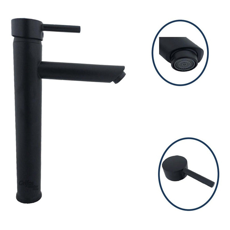 Grifería Monocontrol Lavamanos Alta Cuello Recto Corto Negro