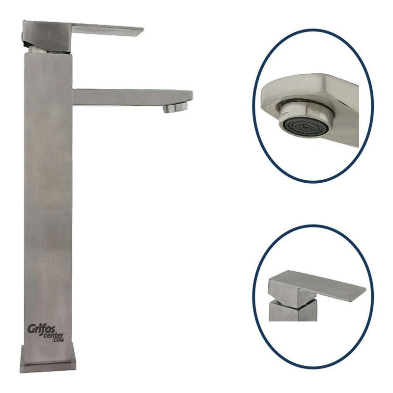Grifería Monocontrol Lavamanos Alto Cuadrado Acero