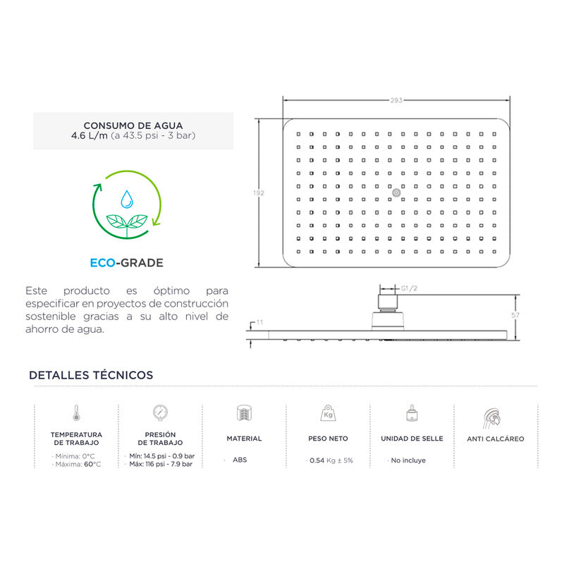 Ducha Regadera Rectangular 19*29cm Negro Mate