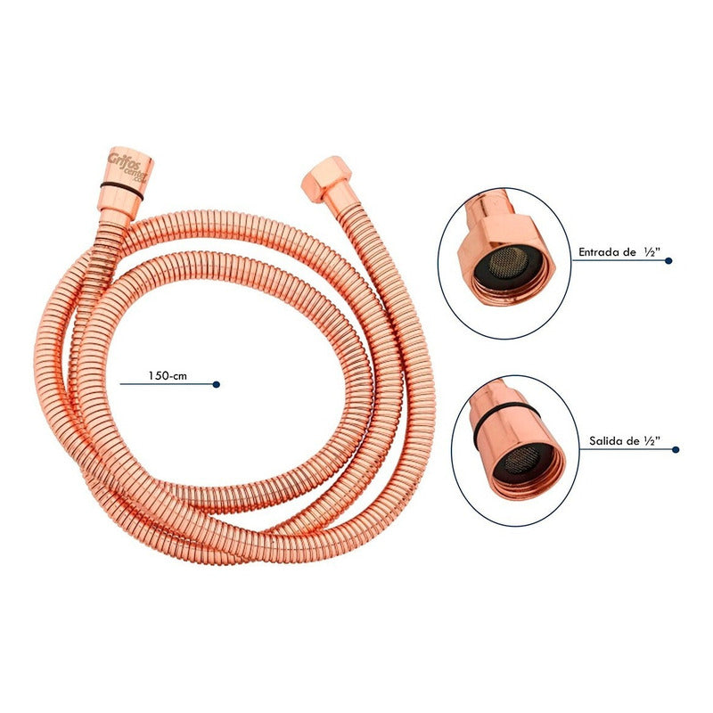 Manguera de Teleducha 150 cm Oro Rosa -Salida de 1/2 -Entrada de 1/2 -150 cm -Material de alta calidad -Diseño elegante y funcional -Venta factura régimen común. -Somos fabricantes de sus ideas- ENVÍO GRATIS -Venta factura régimen común. -También contamos con variedad de tonos. -Somos fabricantes de sus ideas. -------------ENTREGA DEL PRODUCTO ENTRE 1 A 2 DIAS EN CIUDADES PRINCIPALES Y DE NO SER ASI DE 2 A 3 DIAS HABILES ---------------------------------- -SOMOS FABRICANTES EN GRIFERIA VITAGE- SE REALIZA ACABADO (ANTIGUO) A TODA CLASE DE GRIFERIAS NUEVAS O USADAS. ¿Generan factura legal? Si. Generamos facturas legales con IVA incluido. Somos régimen común. ¿Mi compra tiene garantía? Si. Todos nuestros productos son nuevos y cuentan con garantía oficial. Se entregan en sus empaques o cajas originales. ¿Tiene punto de venta? SI, somos GRIFOS CENTER y tenemos nuestro punto de venta, puedes recoger tus productos directamente si deseas. • Puedes recoger en nuestro punto de venta•