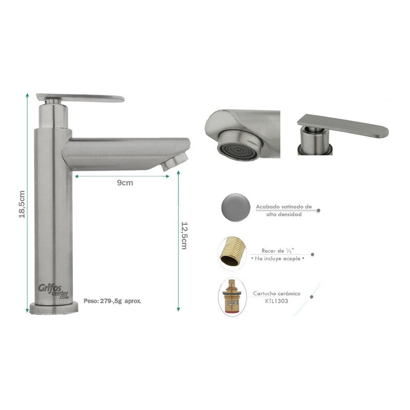 Llave lavamanos Baja Cylinder Satin -Altura: 18,5 cm -Acabado satinado de alta densidad -Racor de ½" • No incluye acople • -Cartucho cerámico KTL1303 Peso: 362g aprox. Marca: Grifos center Diseño: Elegante y funcional Contenido: Llaves agua fría Características. Sistema economizador. Producto de fácil instalación y mantenimiento. Uso: Lavamanos Garantía: 12 meses ENVÍO GRATIS -Venta factura régimen común. -También contamos con variedad de tonos entre ellos cromo, dorado, negro. -Somos fabricantes de sus ideas. -------------ENTREGA DEL PRODUCTO ENTRE 1 A 2 DIAS EN CIUDADES PRINCIPALES Y DE NO SER ASI DE 2 A 3 DIAS HABILES ---------------------------------- -SOMOS FABRICANTES EN GRIFERIA VITAGE- SE REALIZA ACABADO (ANTIGUO) A TODA CLASE DE GRIFERIAS NUEVAS O USADAS. ¿Generan factura legal? Si. Generamos facturas legales con IVA incluido. Somos régimen común. ¿Mi compra tiene garantía? Si. Todos nuestros productos son nuevos y cuentan con garantía oficial. Se entregan en sus empaques o cajas originales. ¿Tiene punto de venta? SI, somos GRIFOS CENTER y tenemos nuestro punto de venta, puedes recoger tus productos directamente si deseas. • Puedes recoger en nuestro punto de venta •
