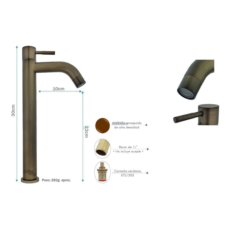 Llave Lavamanos Alta Cylinder Vintage -Altura: 30 cm -Acabado satinado de alta densidad -Racor de ½" • No incluye acople • -Cartucho cerámico KTL1302 Peso: 392g aprox. Marca: Grifos center Diseño: Elegante y funcional Contenido: Llaves agua fría Características. Sistema economizador. Producto de fácil instalación y mantenimiento. Uso: Lavamanos Garantía: 12 meses ENVÍO GRATIS -Venta factura régimen común. -También contamos con variedad de tonos entre ellos cromo, dorado, negro. -Somos fabricantes de sus ideas. -------------ENTREGA DEL PRODUCTO ENTRE 1 A 2 DIAS EN CIUDADES PRINCIPALES Y DE NO SER ASI DE 2 A 3 DIAS HABILES ---------------------------------- -SOMOS FABRICANTES EN GRIFERIA VITAGE- SE REALIZA ACABADO (ANTIGUO) A TODA CLASE DE GRIFERIAS NUEVAS O USADAS. ¿Generan factura legal? Si. Generamos facturas legales con IVA incluido. Somos régimen común. ¿Mi compra tiene garantía? Si. Todos nuestros productos son nuevos y cuentan con garantía oficial. Se entregan en sus empaques o cajas originales. ¿Tiene punto de venta? SI, somos GRIFOS CENTER y tenemos nuestro punto de venta, puedes recoger tus productos directamente si deseas. • Puedes recoger en nuestro punto de venta •
