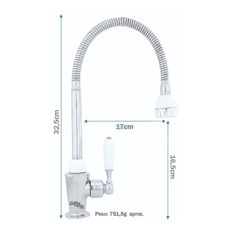 Llave Lavaplatos Alta Flexo -Altura: 32,5 cm -Acabado cromado de alta densidad -Racor de ½" • No incluye acople • -Cartucho cerámico 1303 Peso: 751,5g aprox. Marca: Grifos center Diseño: Elegante y funcional Contenido: Llaves agua fría Características. Sistema economizador. Producto de fácil instalación y mantenimiento. Uso: Lavamanos Garantía: 12 meses ENVÍO GRATIS -Venta factura régimen común. -También contamos con variedad de tonos entre ellos cromo, dorado, negro. -Somos fabricantes de sus ideas. -------------ENTREGA DEL PRODUCTO ENTRE 1 A 2 DIAS EN CIUDADES PRINCIPALES Y DE NO SER ASI DE 2 A 3 DIAS HABILES ---------------------------------- -SOMOS FABRICANTES EN GRIFERIA VITAGE- SE REALIZA ACABADO (ANTIGUO) A TODA CLASE DE GRIFERIAS NUEVAS O USADAS. ¿Generan factura legal? Si. Generamos facturas legales con IVA incluido. Somos régimen común. ¿Mi compra tiene garantía? Si. Todos nuestros productos son nuevos y cuentan con garantía oficial. Se entregan en sus empaques o cajas originales. ¿Tiene punto de venta? SI, somos GRIFOS CENTER y tenemos nuestro punto de venta, puedes recoger tus productos directamente si deseas. • Puedes recoger en nuestro punto de venta •