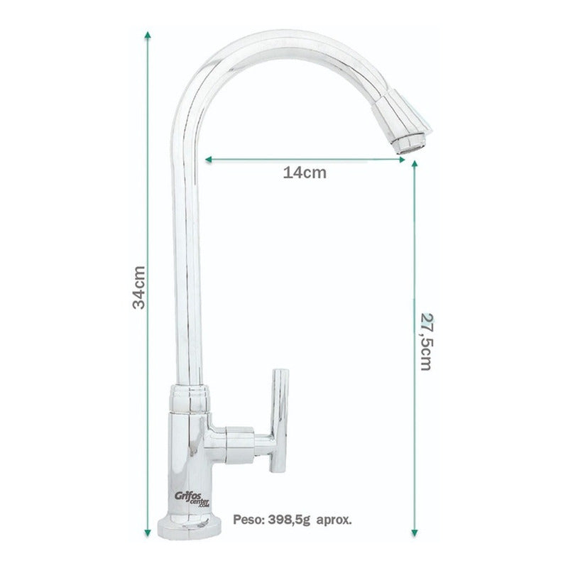 Llave Lavaplatos Alta Mucca -Altura: 34 cm -Acabado cromado de alta densidad -Racor de ½" • No incluye acople • -Cartucho cerámico 1302 Peso: 398,5g aprox. Marca: Grifos center Diseño: Elegante y funcional Contenido: Llaves agua fría Características. Sistema economizador. Producto de fácil instalación y mantenimiento. Uso: Lavamanos Garantía: 12 meses ENVÍO GRATIS -Venta factura régimen común. -También contamos con variedad de tonos entre ellos cromo, dorado, negro. -Somos fabricantes de sus ideas. -------------ENTREGA DEL PRODUCTO ENTRE 1 A 2 DIAS EN CIUDADES PRINCIPALES Y DE NO SER ASI DE 2 A 3 DIAS HABILES ---------------------------------- -SOMOS FABRICANTES EN GRIFERIA VITAGE- SE REALIZA ACABADO (ANTIGUO) A TODA CLASE DE GRIFERIAS NUEVAS O USADAS. ¿Generan factura legal? Si. Generamos facturas legales con IVA incluido. Somos régimen común. ¿Mi compra tiene garantía? Si. Todos nuestros productos son nuevos y cuentan con garantía oficial. Se entregan en sus empaques o cajas originales. ¿Tiene punto de venta? SI, somos GRIFOS CENTER y tenemos nuestro punto de venta, puedes recoger tus productos directamente si deseas. • Puedes recoger en nuestro punto de venta •