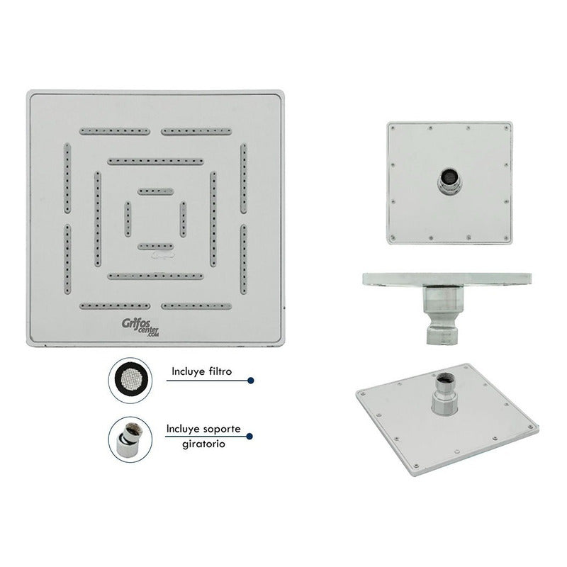 DUCHA CUADRADA SLIM LINEAL 6" SKU:DF-218-6 MEDIDAS 15 X 15 CM -Incluye filtro -Incluye soporte giratorio -Venta factura régimen común. -También contamos con variedad de tonos. -Somos fabricantes de sus ideas. ----SE REALIZA ACABADO (ANTIGUO) A TODA CLASE DE GRIFERÍAS NUEVAS O USADAS----- ¿Generan factura legal y electrónica? Si. generamos factura legal con IVA , somos régimen común y realizamos facturación electrónica. ¿Mi compra tiene garantía? Si. todos nuestros productos son nuevos y cuentan con garantía oficial. Se entregan en sus empaques o cajas. ¿Tiene punto de venta? Somos GRIFOS CENTER y tenemos nuestro punto de venta, puedes recoger tus productos directamente si deseas. ¿Dónde están ubicados? No solo somos tienda online, también tenemos tienda física con un amplio Stock de nuestros productos para envío inmediato, GRIFOS CENTER esta ubicado en el Norte de Bogotá podemos entregarte el mismo día dependiendo el producto y cantidad. •Recuerda que somos GRIFOS CENTER para mayor información •Puedes recoger en nuestro punto de venta. ¿ Son fabricantes? - Si, GRIFOS CENTER es fabricante directo de griferÍas VINTAGE (fabricando tus ideas y ofreciendo diferentes estilos de acabados para tu grifería). Además brindamos una amplia variedad de productos institucionales y para el hogar con la mejor calidad. ¿Ofrecen productos al por mayor? - Si, en GRIFOS CENTER contamos con un amplio inventario y variedad de productos para atender proyectos grandes como lo son las constructoras , hoteles , colegios y grandes superficies. ¿ Hacen envíos a nivel nacional? - Si GRIFOS CENTER realiza envíos a nivel nacional. ¿Se pueden retirar los productos en el punto de venta? Tenemos la posibilidad de retirar el producto en nuestro punto de venta o enviar por otra transportadora colocando recojo en el domicilio del vendedor este ultimo el comprador cancela el envio cuando llegue el producto. ¿Qué garantías manejan? -Según la referencia comprada generalmente tiene garantía de 1 año donde nos podrás informar cualquier inconveniente ----------------------SOMOS IMPORTADORES CON MARCA PROPIA--------------------------