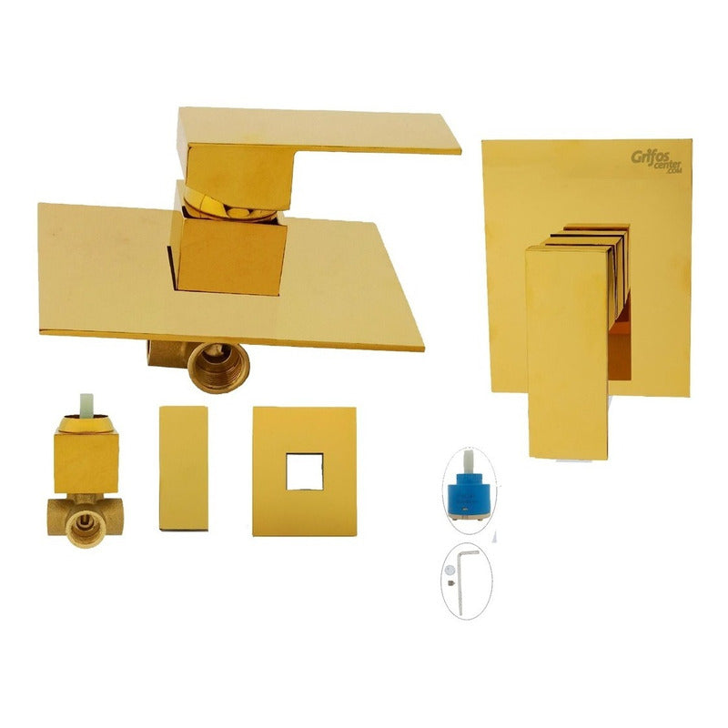 Grifería Monocontrol Ducha Cuadrado Dorado