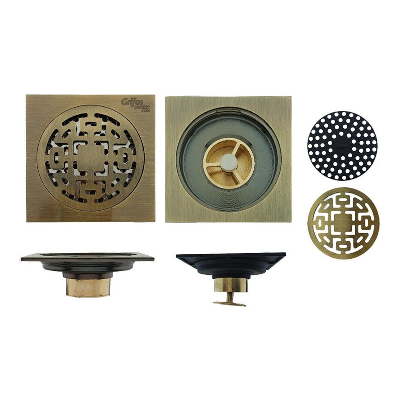 Rejilla De Piso Cuadrada Antirretorno Bronce Muisca Vintage