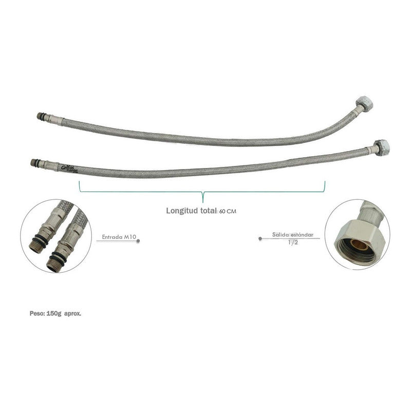 PAR ACOPLE ACERO 304 -60CM (MONOCONTROL) SKU:KTL1775 -Longitud total 60cm -Entrada M10 -Salida estándar 1/2 -Venta factura régimen común. -También contamos con variedad de tonos. -Somos fabricantes de sus ideas. ----SE REALIZA ACABADO (ANTIGUO) A TODA CLASE DE GRIFERÍAS NUEVAS O USADAS----- ¿Generan factura legal y electrónica? Si. generamos factura legal con IVA , somos régimen común y realizamos facturación electrónica. ¿Mi compra tiene garantía? Si. todos nuestros productos son nuevos y cuentan con garantía oficial. Se entregan en sus empaques o cajas. ¿Tiene punto de venta? Somos GRIFOS CENTER y tenemos nuestro punto de venta, puedes recoger tus productos directamente si deseas. ¿Dónde están ubicados? No solo somos tienda online, también tenemos tienda física con un amplio Stock de nuestros productos para envío inmediato, GRIFOS CENTER esta ubicado en el Norte de Bogotá podemos entregarte el mismo día dependiendo el producto y cantidad. •Recuerda que somos GRIFOS CENTER para mayor información •Puedes recoger en nuestro punto de venta. ¿ Son fabricantes? - Si, GRIFOS CENTER es fabricante directo de griferÍas VINTAGE (fabricando tus ideas y ofreciendo diferentes estilos de acabados para tu grifería). Además brindamos una amplia variedad de productos institucionales y para el hogar con la mejor calidad. ¿Ofrecen productos al por mayor? - Si, en GRIFOS CENTER contamos con un amplio inventario y variedad de productos para atender proyectos grandes como lo son las constructoras , hoteles , colegios y grandes superficies. ¿ Hacen envíos a nivel nacional? - Si GRIFOS CENTER realiza envíos a nivel nacional. ¿Se pueden retirar los productos en el punto de venta? Tenemos la posibilidad de retirar el producto en nuestro punto de venta o enviar por otra transportadora colocando recojo en el domicilio del vendedor este ultimo el comprador cancela el envio cuando llegue el producto. ¿Qué garantías manejan? -Según la referencia comprada generalmente tiene garantía de 1 año donde nos podrás informar cualquier inconveniente ----------------------SOMOS IMPORTADORES CON MARCA PROPIA---------------------------