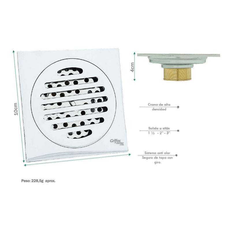 Rejilla Cuadrada Tipo Ladrillo Bronce Medidas: -10 x 10 x 4cm -Cromo de alta densidad -Sistema anti olor -Seguro de tapa con giro Peso: 228,5g aprox. -Hecho de materiales de acero inoxidable, mayor duración de la vida útil. Con funciones de descarga de agua y a prueba de insectos, fácil de limpiar y de usar. -Protege la cocina, el baño, el garaje y el baño de olores desagradables, insectos o ratones. - Marca: GRIFOS CENTER ENVÍO GRATIS -Venta factura régimen común. -También contamos con variedad de tonos entre ellos cromo, dorado, negro. -Somos fabricantes de sus ideas. -------------ENTREGA DEL PRODUCTO ENTRE 1 A 2 DIAS EN CIUDADES PRINCIPALES Y DE NO SER ASI DE 2 A 3 DIAS HABILES ---------------------------------- -SOMOS FABRICANTES EN GRIFERIA VITAGE- SE REALIZA ACABADO (ANTIGUO) A TODA CLASE DE GRIFERIAS NUEVAS O USADAS. ¿Generan factura legal? Si. Generamos facturas legales con IVA incluido. Somos régimen común. ¿Mi compra tiene garantía? Si. Todos nuestros productos son nuevos y cuentan con garantía oficial. Se entregan en sus empaques o cajas originales. ¿Tiene punto de venta? SI, somos GRIFOS CENTER y tenemos nuestro punto de venta, puedes recoger tus productos directamente si deseas. • Puedes recoger en nuestro punto de venta •