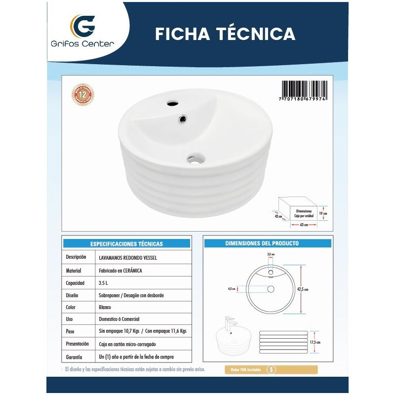 Marca: GRIFOS CENTER Medias:42,5 CM X 41.5CM X 17CM Material de alta calidad Diseño elegante y funcional Venta factura régimen común. Somos fabricantes de sus ideas. -------------ENTREGA DEL PRODUCTO ENTRE 1 A 2 DIAS EN CIUDADES PRINCIPALES Y DE NO SER ASI DE 2 A 3 DIAS HABILES ---------------------------------- ¿Generan factura legal? Si. generamos facturas legales con iva incluido. Somos régimen común. ¿Mi compra tiene garantía? Si. todos nuestros productos son nuevos y cuentan con garantía oficial. Se entregan en sus empaques o cajas originales. ¿Tiene punto de venta? SI, SOMOS GRIFOS CENTER y tenemos nuestro punto de venta, puedes recoger tus productos directamente si deseas. ¿Dónde están ubicados? Estamos en Bogotá podemos entregarte el mismo día dependiendo el producto y cantidad. • puedes recoger en nuestro punto de venta.
