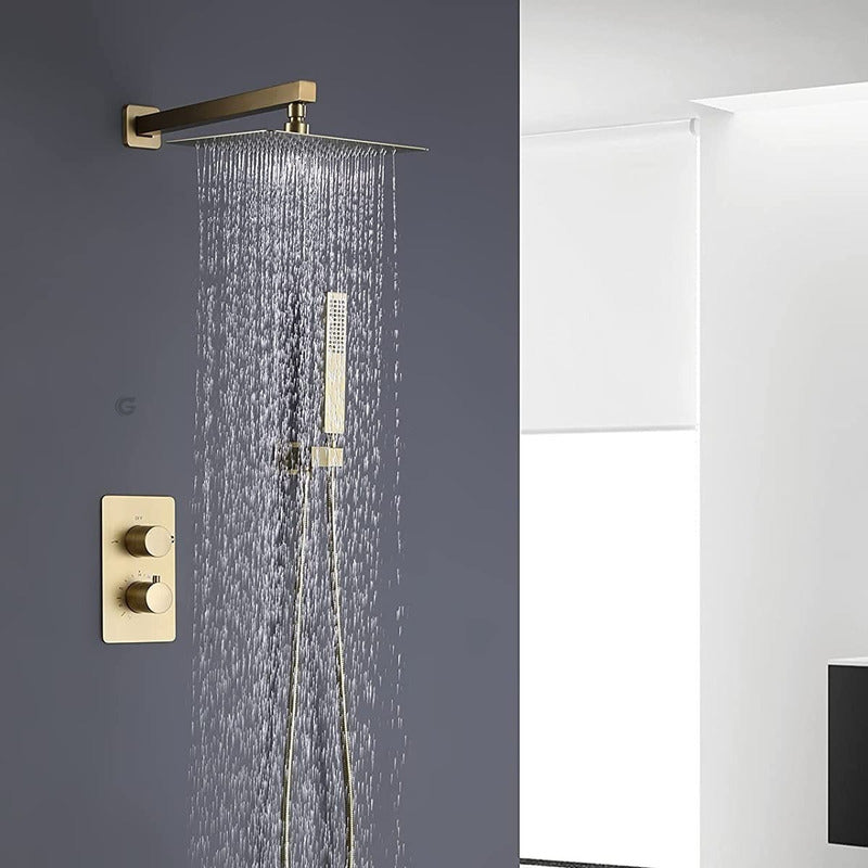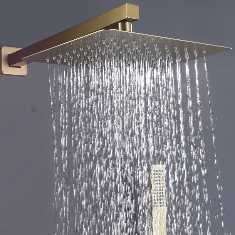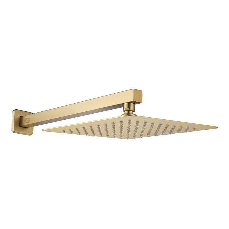 Regadera Ducha Cuadrada Metalica 20x20 Con Tubo Oro Vintage