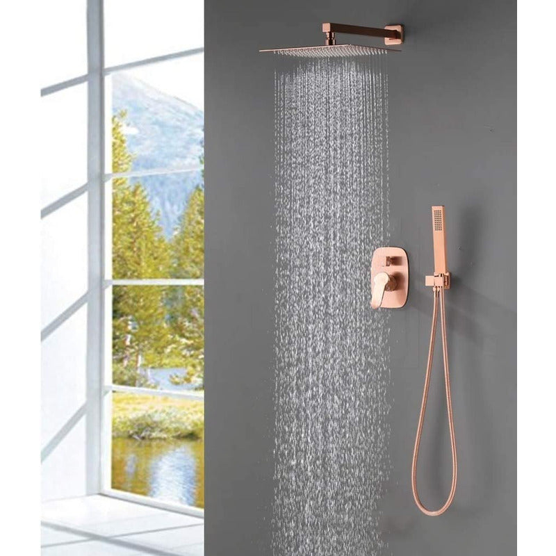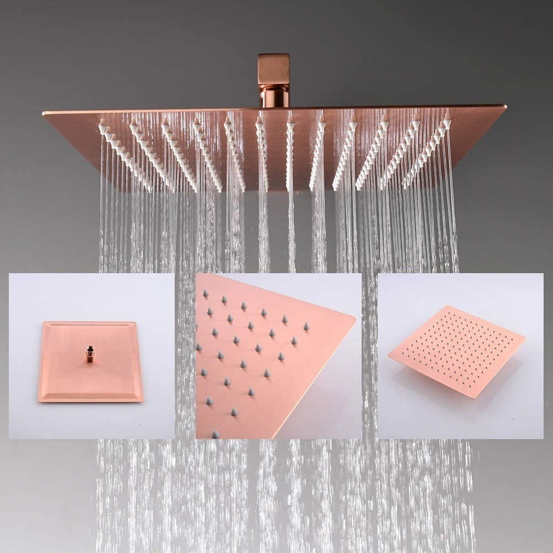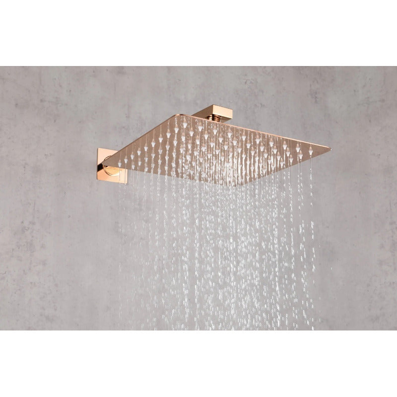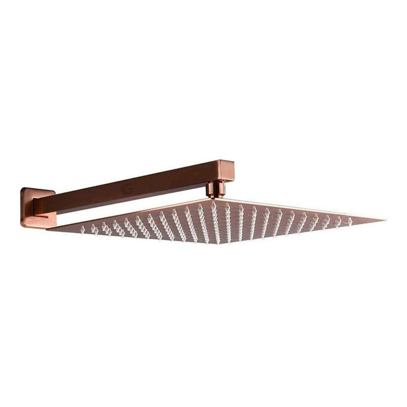 Regadera Ducha Cuadrada Metálica 25x25 Con Tubo Oro Rosa Vin