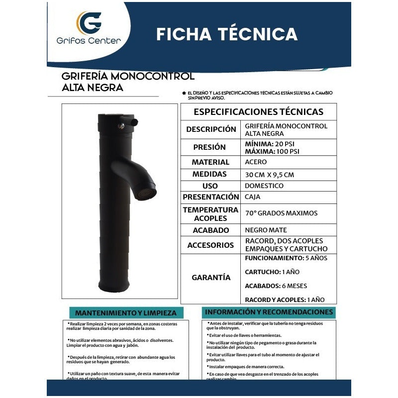 Griferia Monocontrol Lavamanos Alta Negra Vintage SKU:HC028B -Venta factura régimen común. -También contamos con variedad de tonos. -Somos fabricantes de sus ideas. ----SE REALIZA ACABADO (ANTIGUO) A TODA CLASE DE GRIFERÍAS NUEVAS O USADAS----- ¿Generan factura legal y electrónica? Si. generamos factura legal con IVA , somos régimen común y realizamos facturación electrónica. ¿Mi compra tiene garantía? Si. todos nuestros productos son nuevos y cuentan con garantía oficial. Se entregan en sus empaques o cajas. ¿Tiene punto de venta? Somos GRIFOS CENTER y tenemos nuestro punto de venta, puedes recoger tus productos directamente si deseas. ¿Dónde están ubicados? No solo somos tienda online, también tenemos tienda física con un amplio Stock de nuestros productos para envío inmediato, GRIFOS CENTER esta ubicado en el Norte de Bogotá podemos entregarte el mismo día dependiendo el producto y cantidad. •Recuerda que somos GRIFOS CENTER para mayor información •Puedes recoger en nuestro punto de venta. ¿ Son fabricantes? - Si, GRIFOS CENTER es fabricante directo de griferÍas VINTAGE (fabricando tus ideas y ofreciendo diferentes estilos de acabados para tu grifería). Además brindamos una amplia variedad de productos institucionales y para el hogar con la mejor calidad. ¿Ofrecen productos al por mayor? - Si, en GRIFOS CENTER contamos con un amplio inventario y variedad de productos para atender proyectos grandes como lo son las constructoras , hoteles , colegios y grandes superficies. ¿ Hacen envíos a nivel nacional? - Si GRIFOS CENTER realiza envíos a nivel nacional. ¿Se pueden retirar los productos en el punto de venta? Tenemos la posibilidad de retirar el producto en nuestro punto de venta o enviar por otra transportadora colocando recojo en el domicilio del vendedor este ultimo el comprador cancela el envio cuando llegue el producto. ¿Qué garantías manejan? -Según la referencia comprada generalmente tiene garantía de 1 año donde nos podrás informar cualquier inconveniente ----------------------SOMOS IMPORTADORES CON MARCA PROPIA--------------------------
