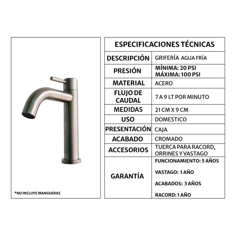 Griferia Lavamanos Agua Fria Plateada Satinada Baja