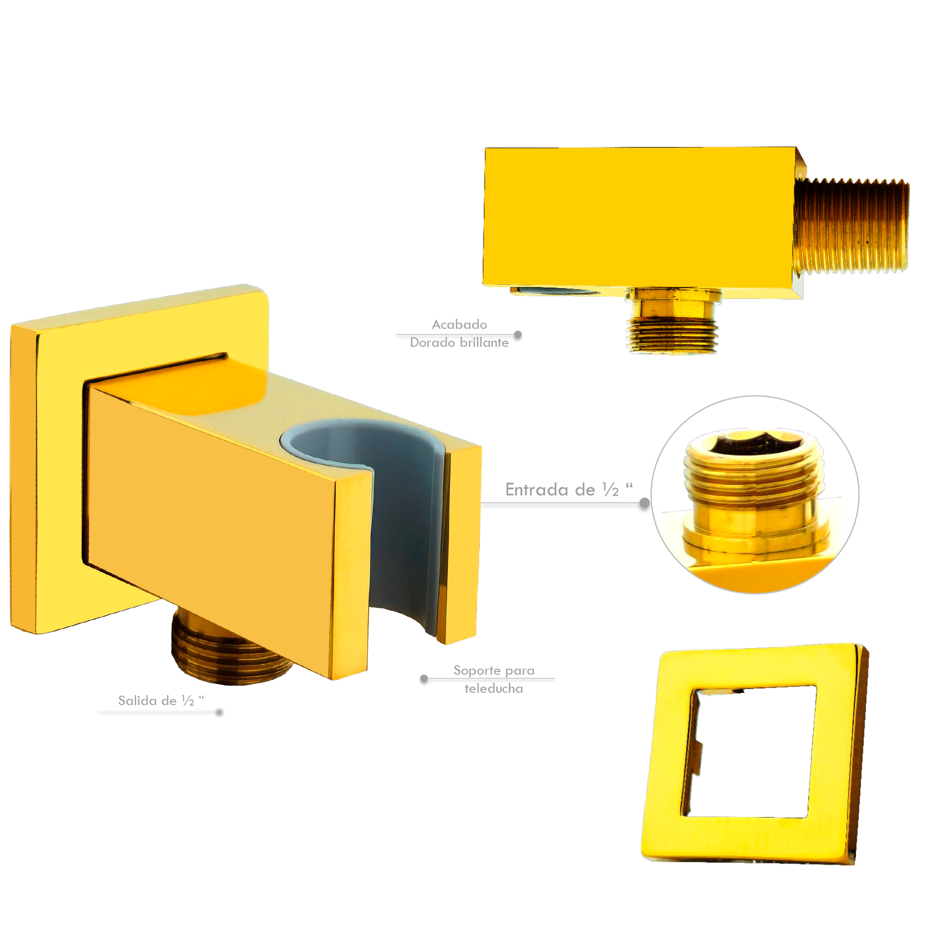 Portateleducha Cuadrado con Salida en Bronce Dorada
