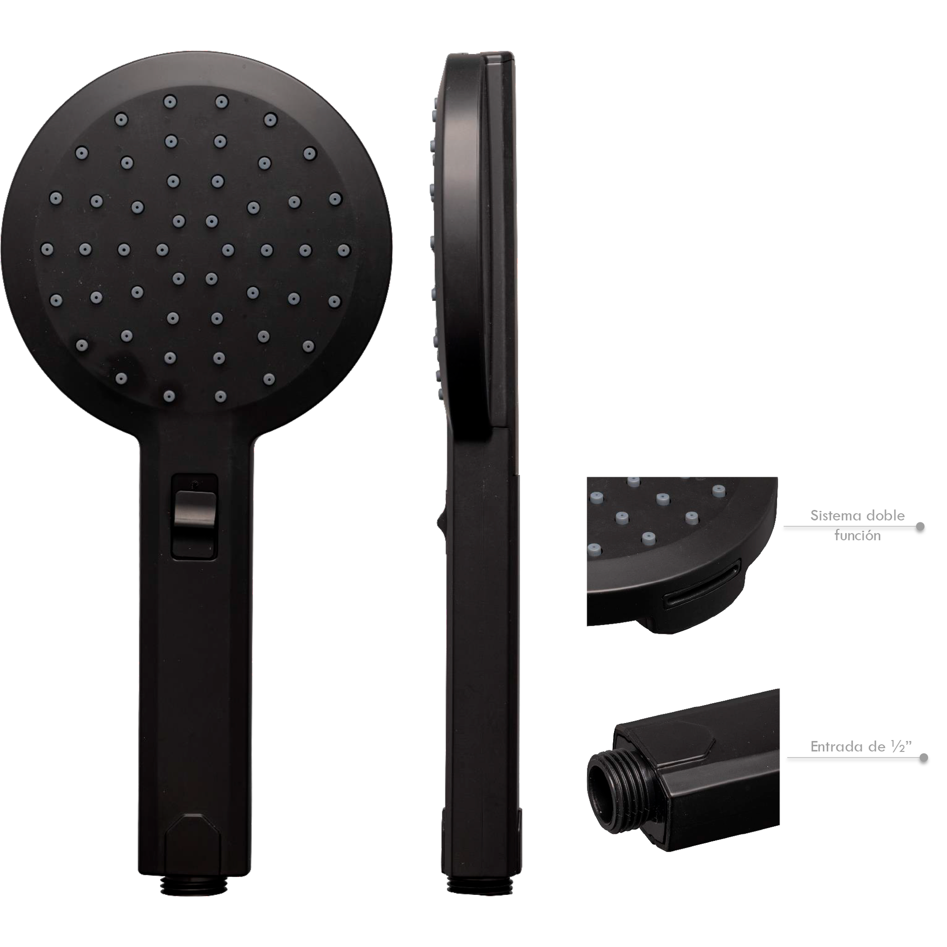Teleducha Redonda Doble Funcion Cascada Negra