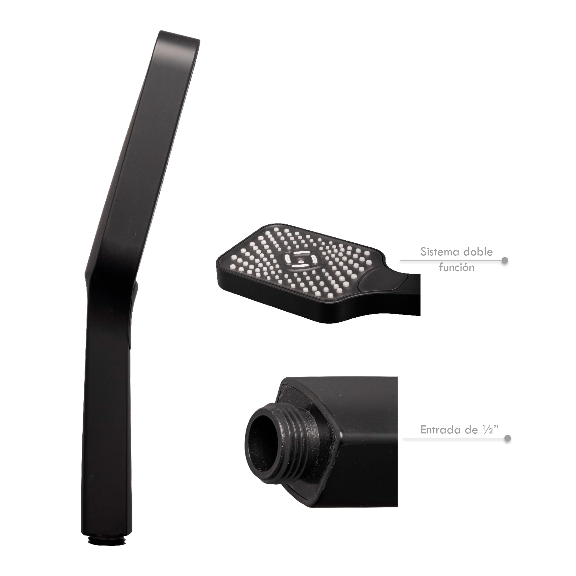 Teleducha Cuadrada en ABS Doble Funcion Negro Mate Geometry