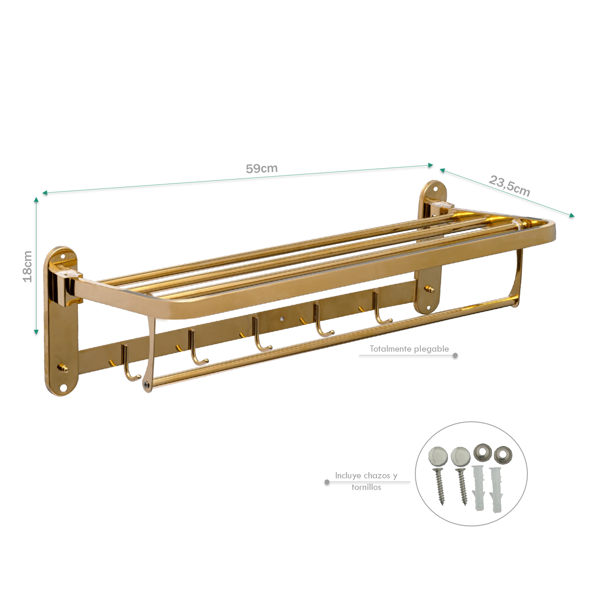 Toallero Hotelero para Baño Acero 304 Dorado