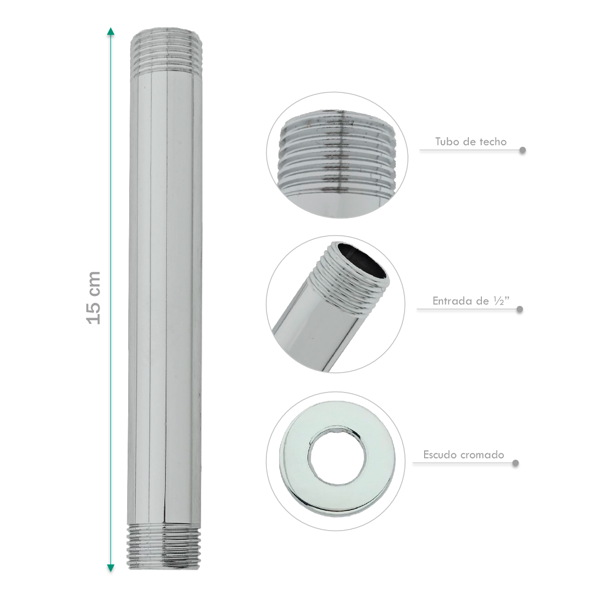 Tubo de Ducha a Techo 15cm Cromado Plateado