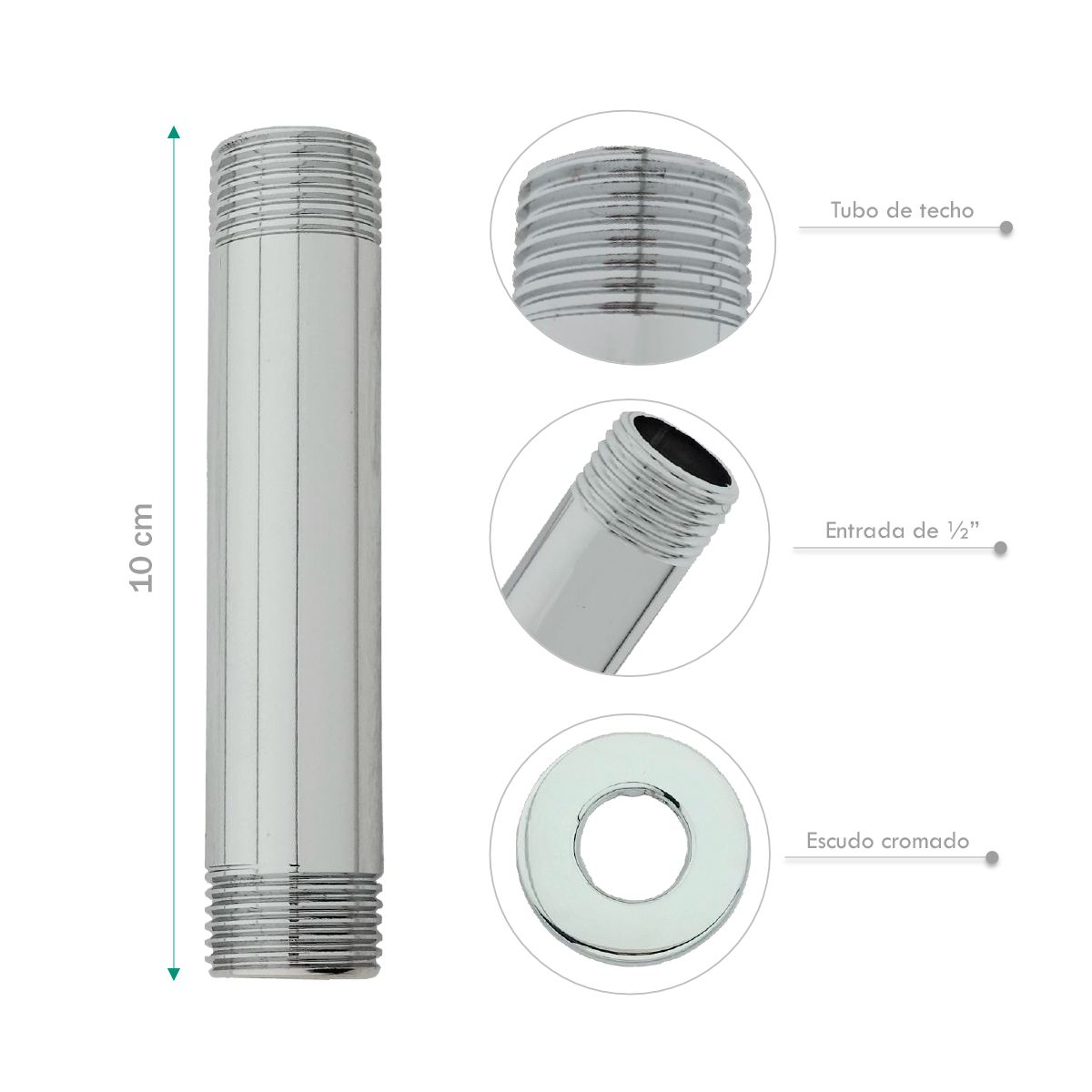 Tubo de Ducha a Techo 10cm Cromado Plateado